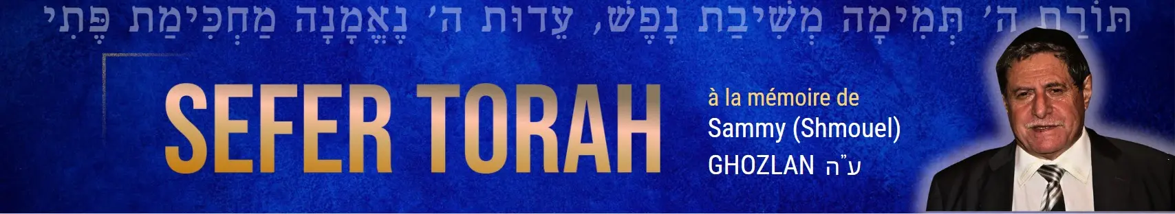 Chaleureuses felicitations pour l ecriture d un sefer torah a la memoire de Sammy Ghozlan dont on a connu son engagement indefectible envers notre communaute. Puisse ce sefer torah illuminer encore d avantage son merite et celui de de sa famille. Kol a kavod Je vous remettrai en mains propres ma contribution a son ecriture.